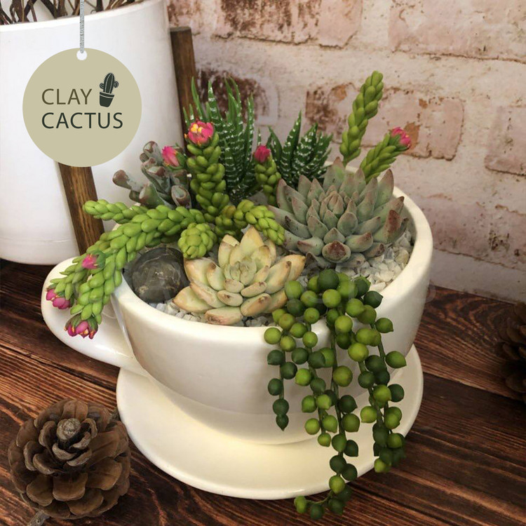گلدان طرح فنجان و نعلبکی سرامیکی
