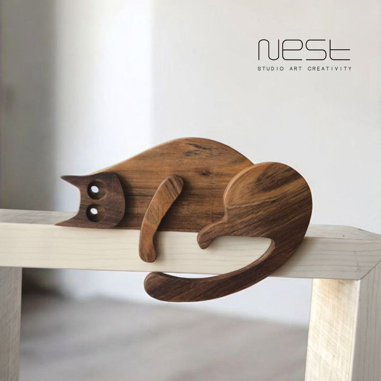 مجسمه گربه چوبی مینیمال