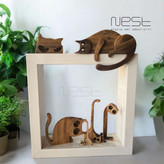 مجسمه گربه چوبی مینبمال طرح بازیگوش ![]()