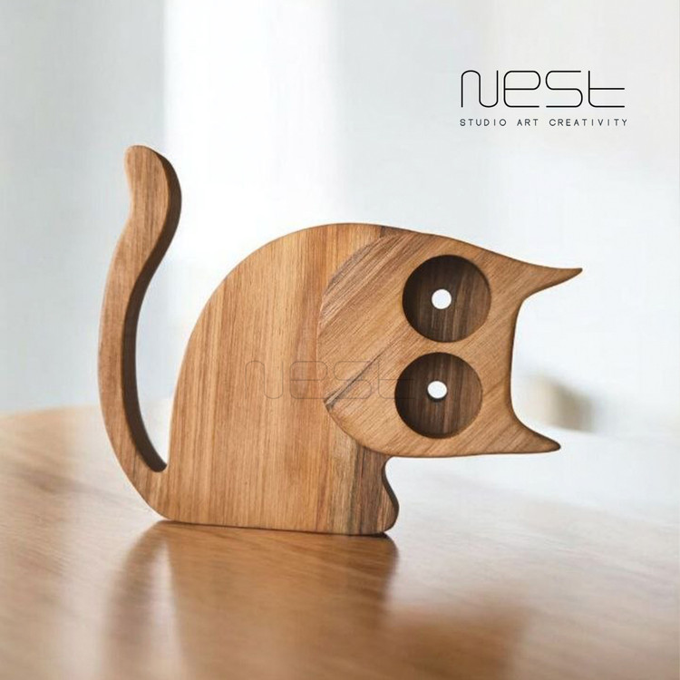 مجسمه گربه چوبی مینیمال