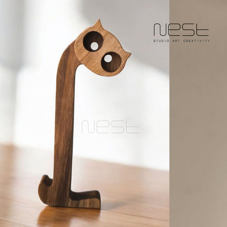 مجسمه گربه چوبی مینیمال
